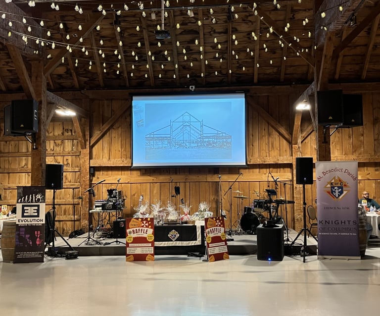 Includes full PA system, wireless mics, stage lighting, technician, setup + teardown.